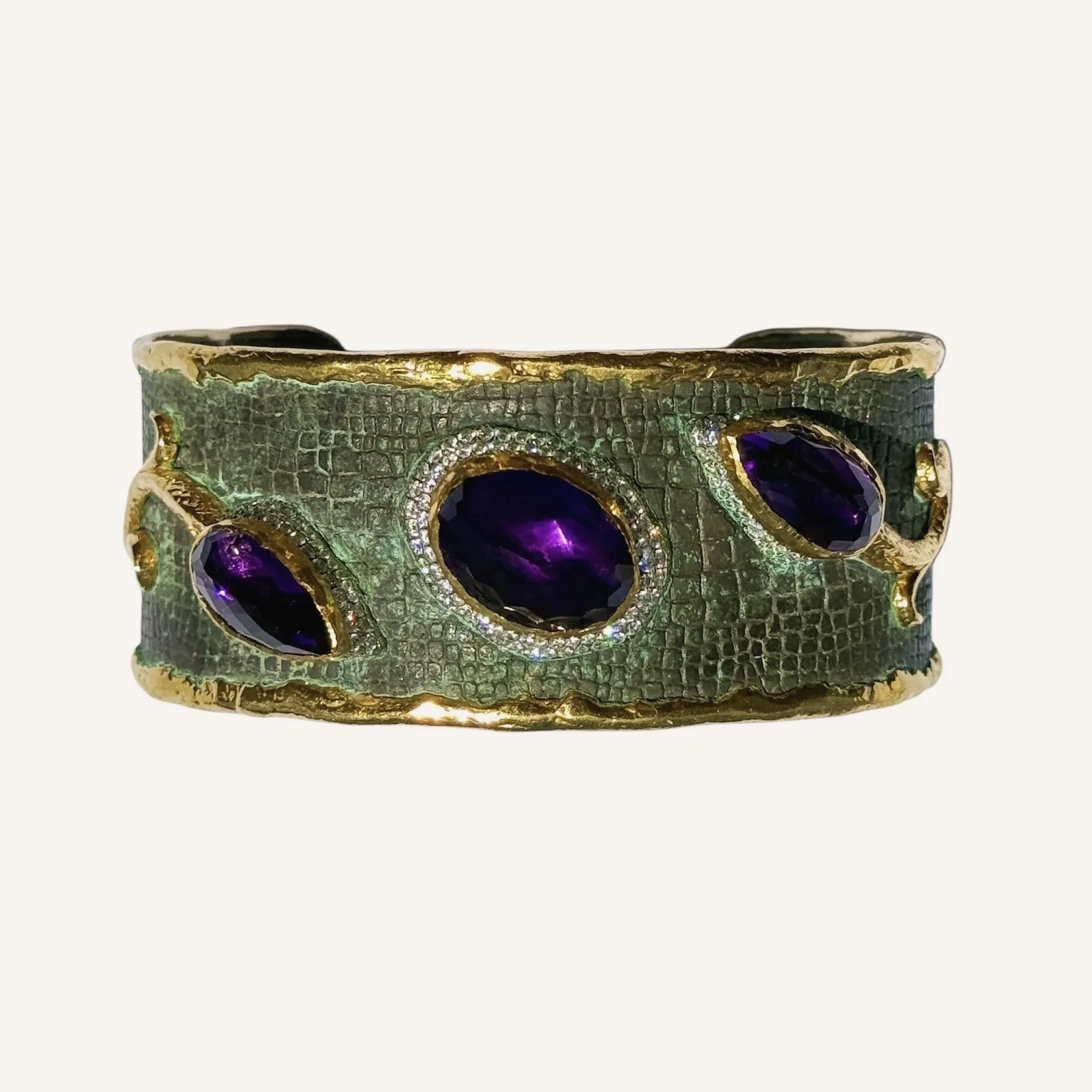 Amethyst Floral Cuff in Green Patina