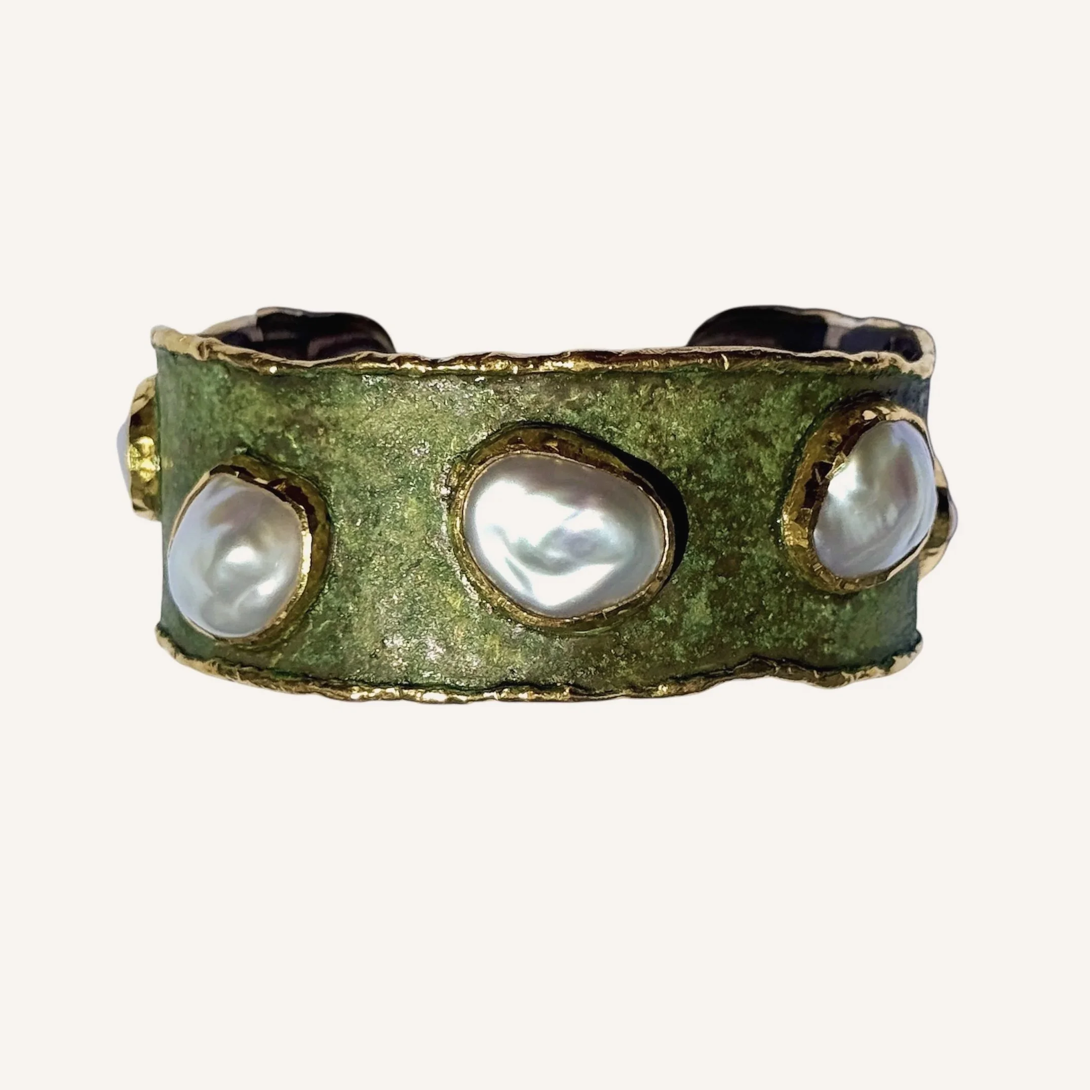 Pearls Regal Cuff in Green Patina