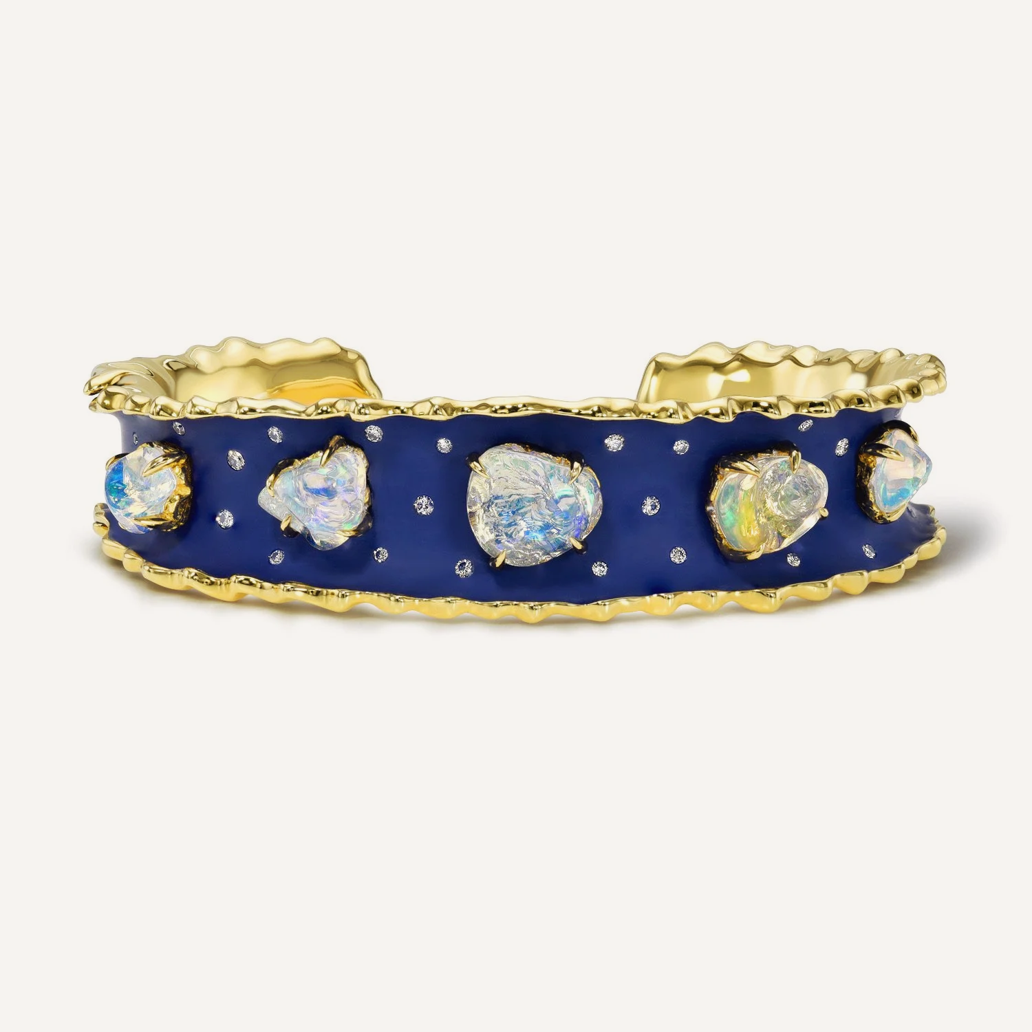 Clear mexican Fire Opals Ruffle Cuff Matte Enameled